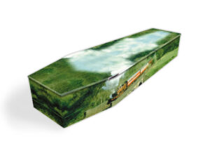 The colourful coffins shown here are a small selection of the choices available all of which can be customised to your requirements, or they can be made from your own artwork or idea.